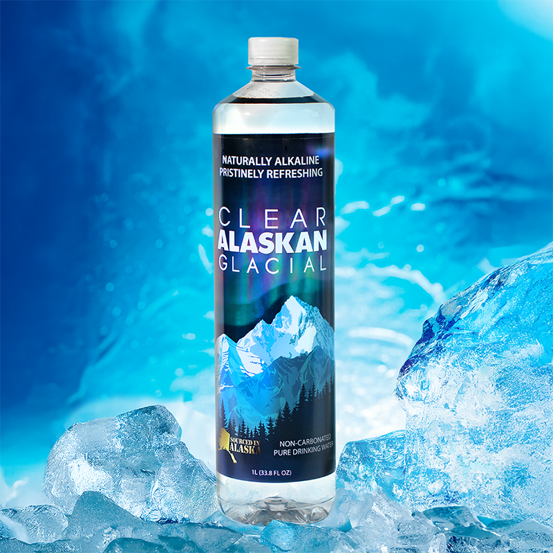 CLEAR ALASKAN GLACIAL is locally bottled in Chugiak, Alaska.